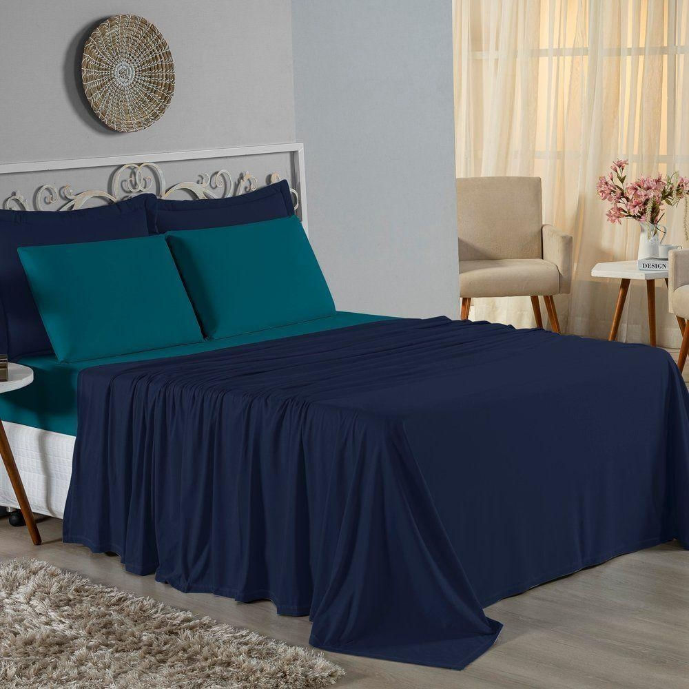 Jogo De Cama Casal Viúva Nobre 4 Peças Malha 100% Algodão - Azul-marinho / Petróleo