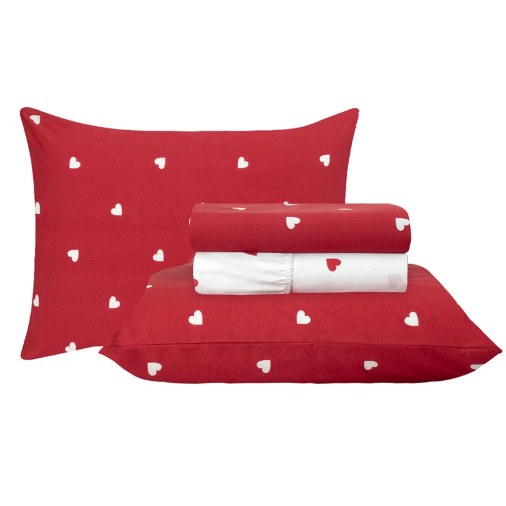 Jogo de Cama Duplo Casal 4 Peças Percal 180 Fios Coração Malbec Sonhare Prata