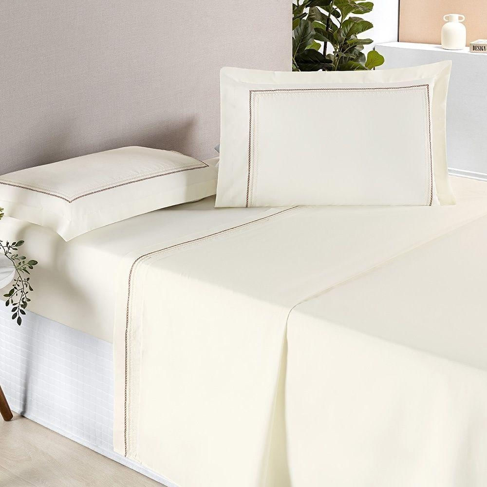 Jogo De Cama Ellos 200 Fios Casal Padrão 04 Peças 80% Algodão / 20% Poliéster - Palha