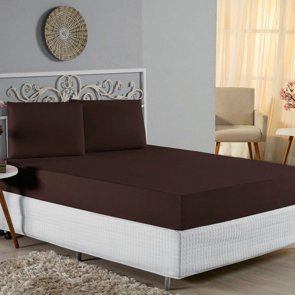 Jogo De Cama King Nobre 3 Peças Lençol Com Elástico De 30cm De Altura Malha 100% Algodão - Marrom