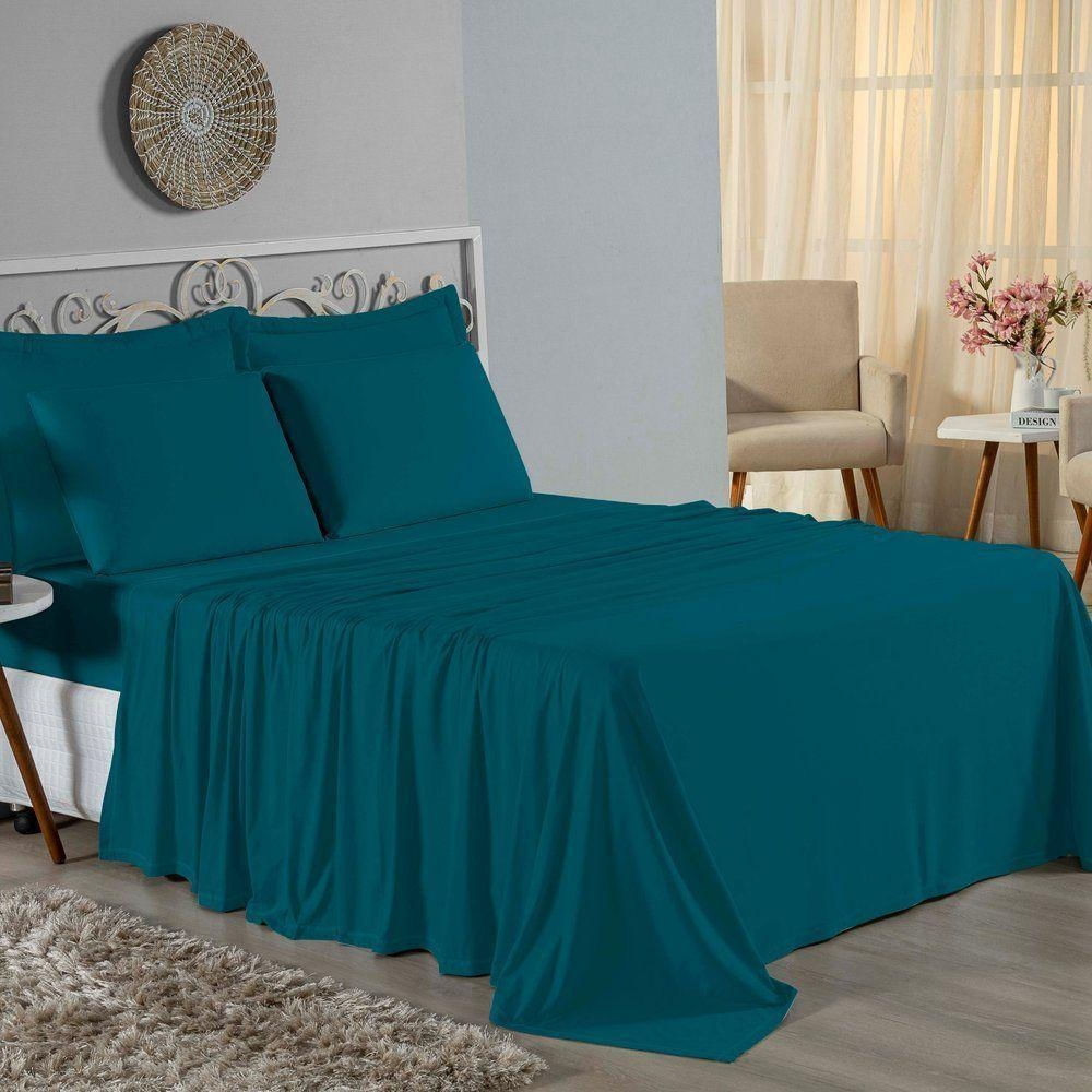 Jogo De Cama King Nobre 4 Peças Lençol Com Elástico De 30cm De Altura Malha 100% Algodão - Petróleo