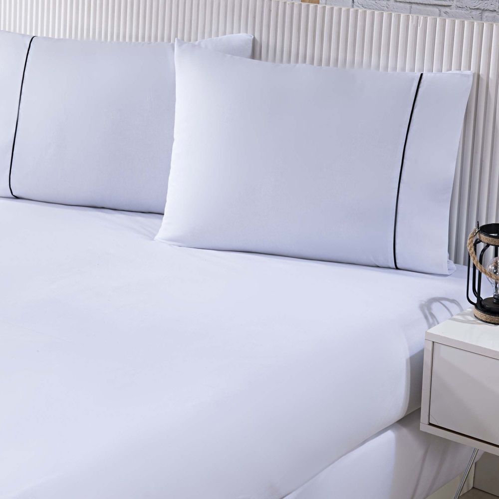 Jogo De Cama Lençol 100% Algodão Percal 150 Fios Casal Gran Moratta 3 Peças - Branco E Cinza