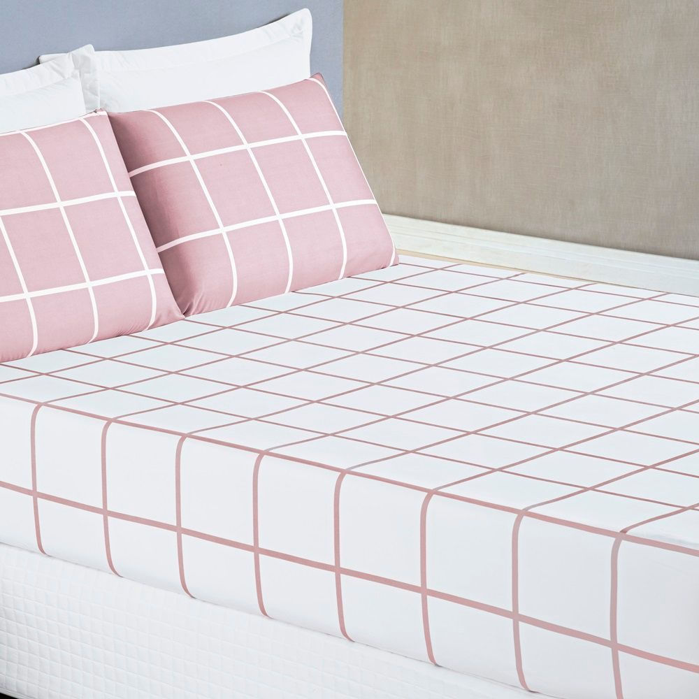 Jogo de Cama Lençol 200 Fios Austin Casal Padrão 03 Peças - Rosa