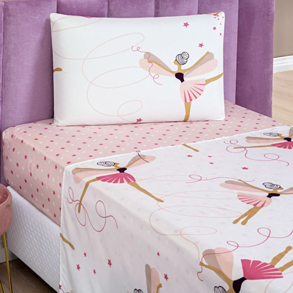 Jogo de Cama Lençol Carrosel Solteiro 03 Peças Infantil Estampado Divertido - Bailarina Ballet