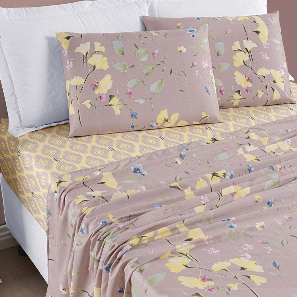 Jogo de Cama Lençol Casal King 04 Peças Microfibra Estampada Ayla - Lavanda Floral