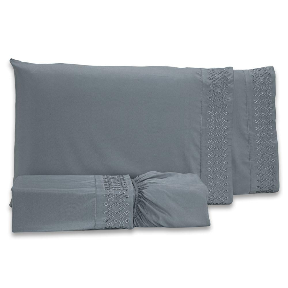 Jogo De Cama Lençol King Harmony Bordado Geométrico Percal 300 Fios Com Fronhas 04 Peças - Toque Acetinado Cor Cinza