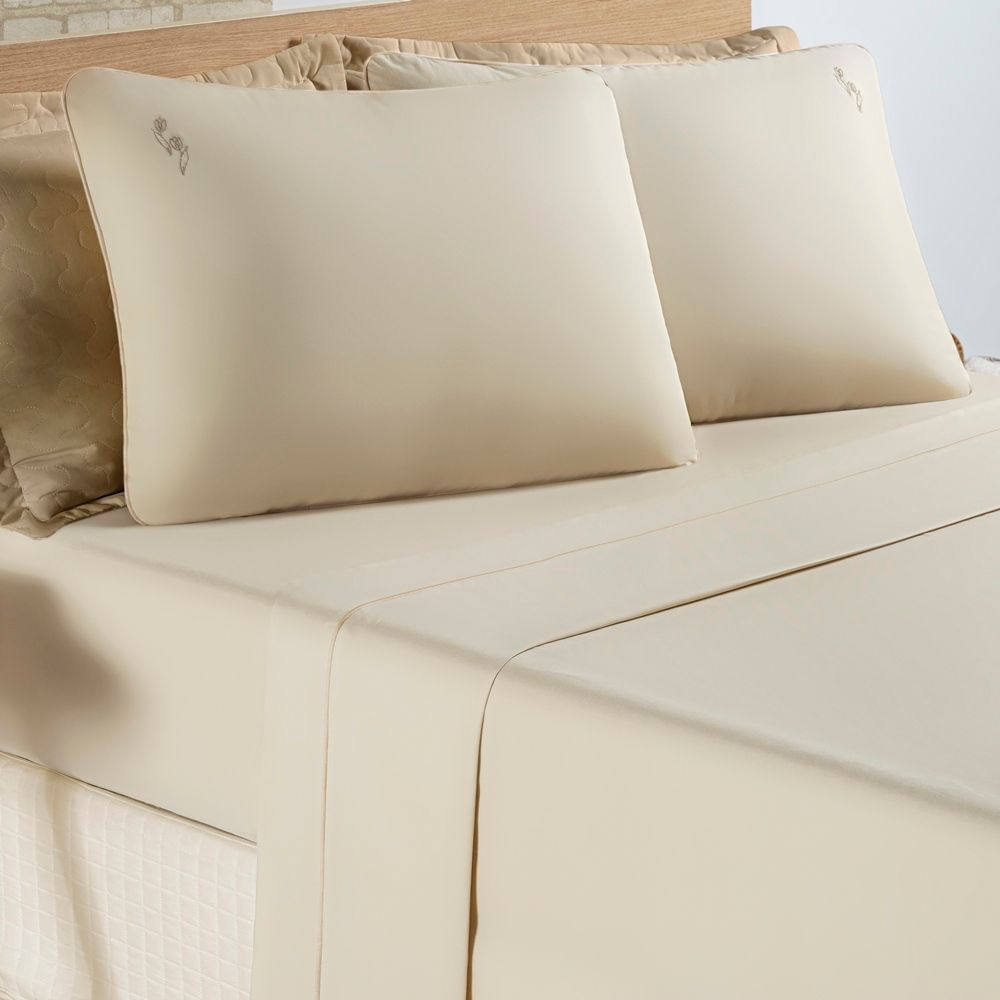Jogo de Cama Lençol Percal 200 Fios 100% Algodão Bordado Liana Casal Padrão 04 Peças - Caqui