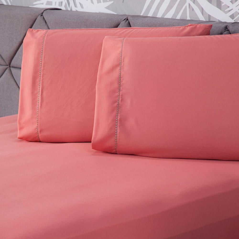 Jogo De Cama Lençol Queen Essential Liso Rosê Com Fronhas 03 Peças - Percal Soft 200 Fios