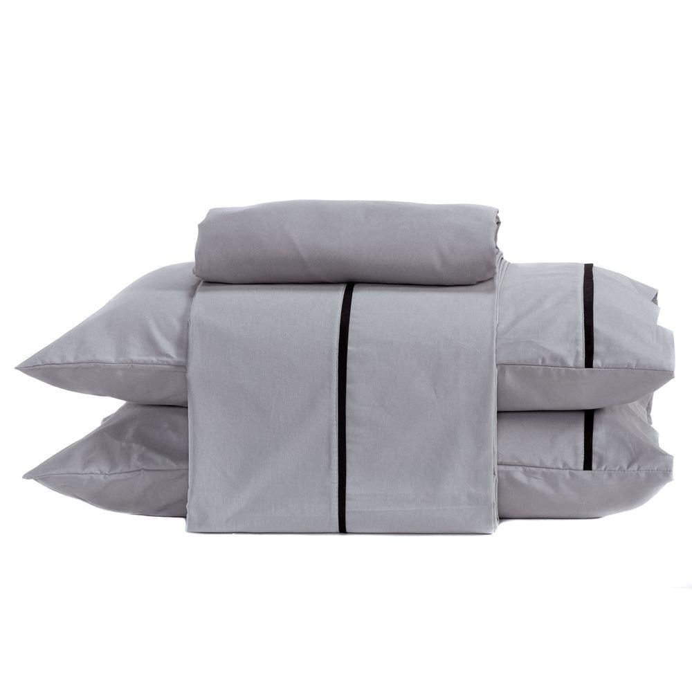 Jogo De Cama Lençol Queen Milano Liso Com Fronhas Viés 04 Peças - Percal Algodão 200 Fios Cor Cinza