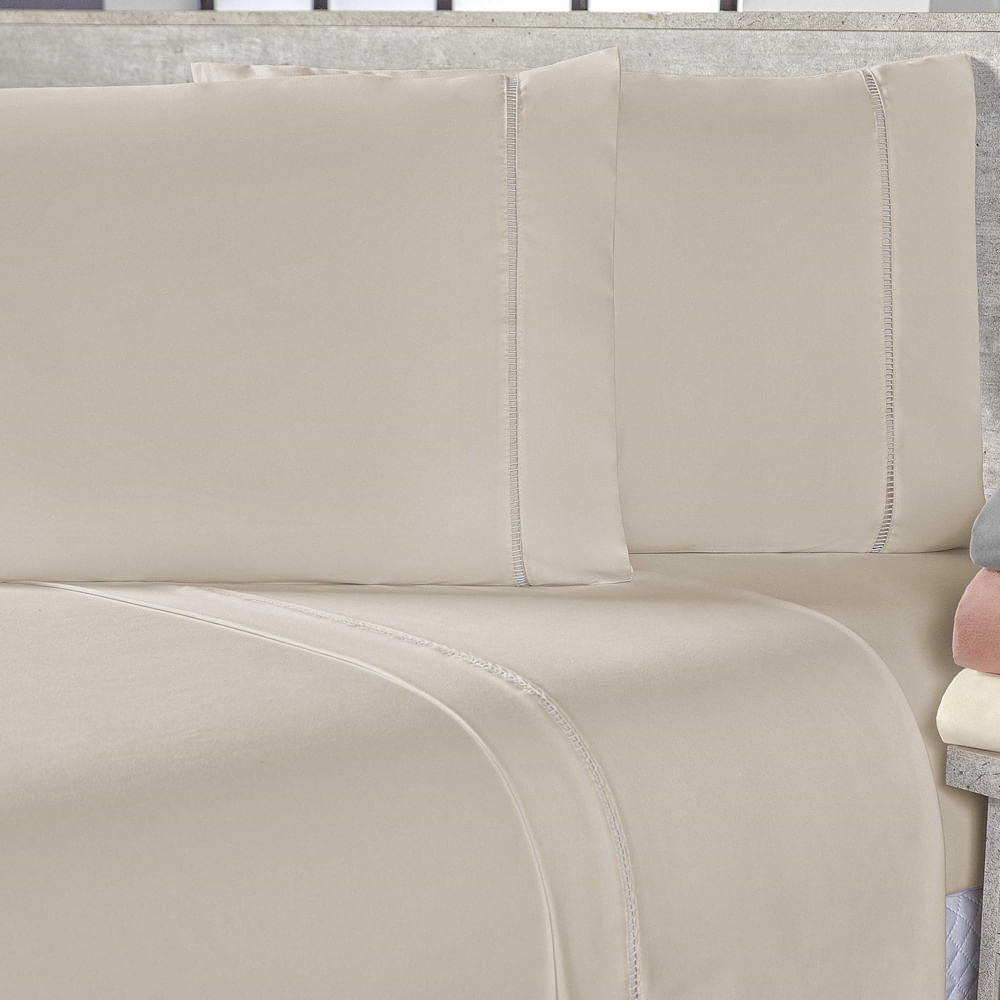 Jogo de Cama Lençol Sofist Ponto Palito 400 Fios Toque Macio Solteiro 02 Peças - Bege