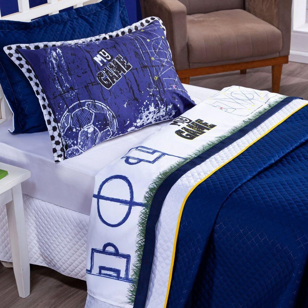 Jogo De Cama Lençol Solteiro Futebol Game Branco Com Fronha E Virol Estampados 03 Peças - Percal 200 Fios