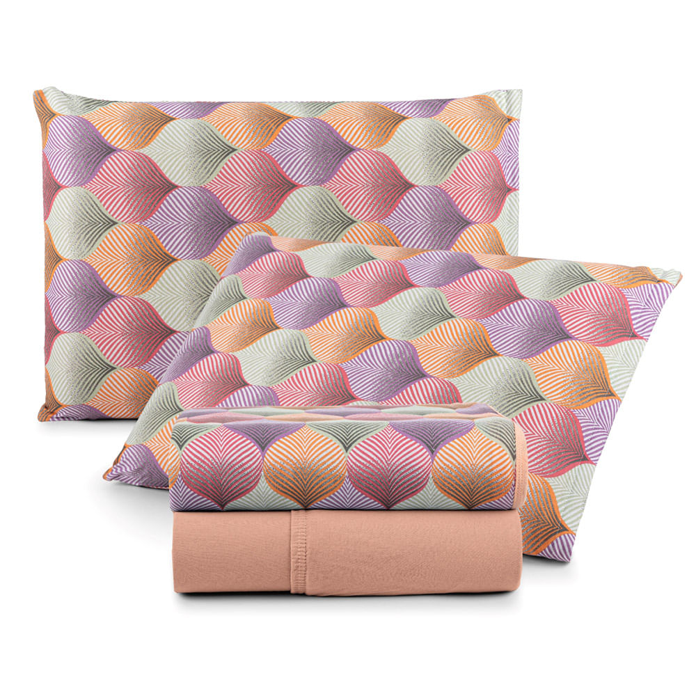 Jogo de Cama Lençol Sonho Bom King em Malha 4 Peças - Salmão - 100% Algodão
