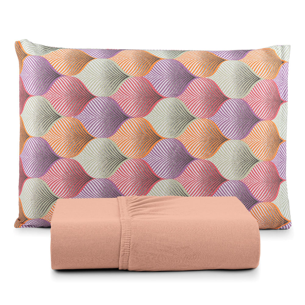 Jogo de Cama Lençol Sonho Bom Solteiro em Malha Algodão 2 Peças - Salmão - 100% Algodão