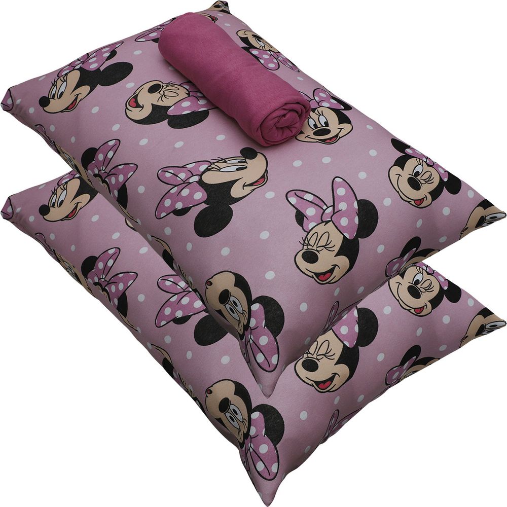 Jogo de Cama Portallar Casal Malha 100% Algodão Disney Big Minnie 3 Peças Rosa