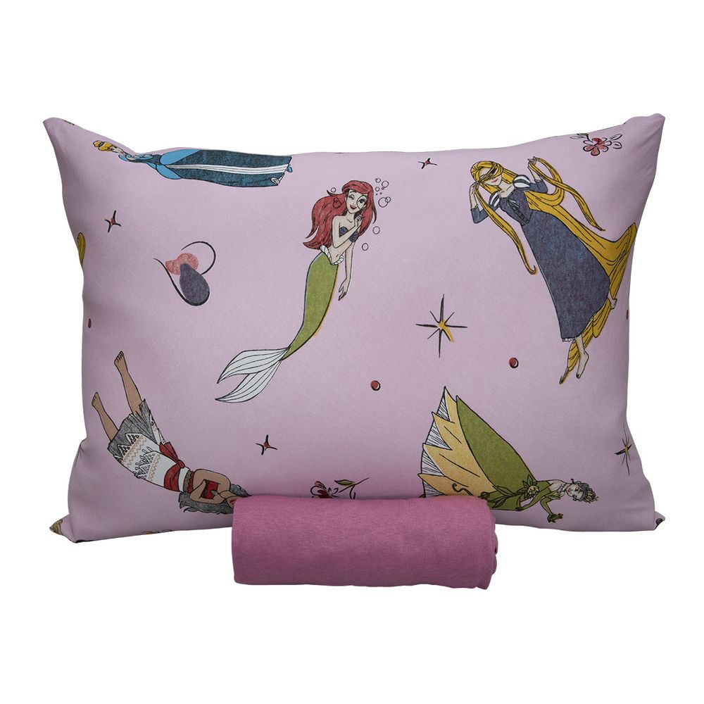 Jogo de Cama Portallar Solteiro Malha 100% Algodão Disney Princesas Brilhantes 2 Pçs Rosa