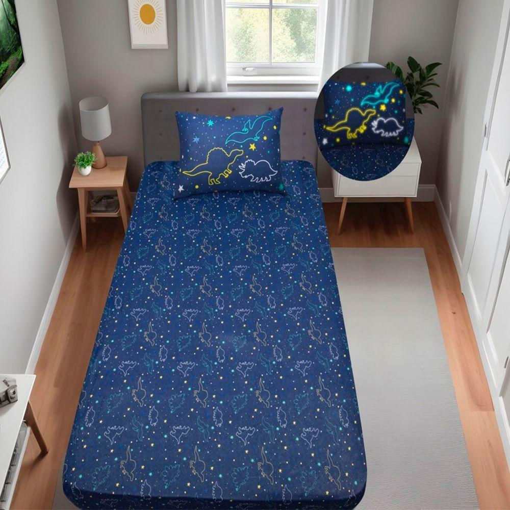 Jogo De Cama Portallar Solteiro Malha Mista Joy Dinossauros 2 Peças Azul