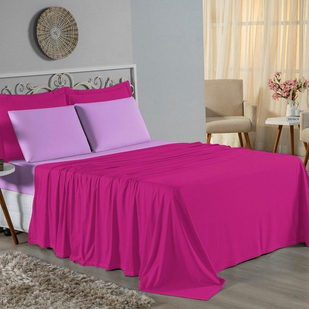 Jogo De Cama Queen Nobre 4 Peças Lençol Com Elástico De 30cm De Altura Malha 100% Algodão - Pink / Lilás
