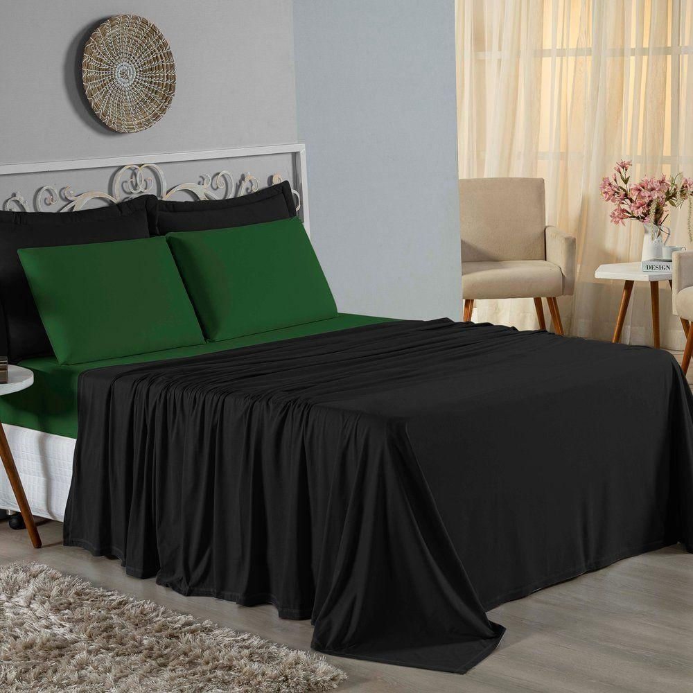 Jogo De Cama Queen Nobre 4 Peças Lençol Com Elástico De 30cm De Altura Malha 100% Algodão - Preto / Verde-bandeira