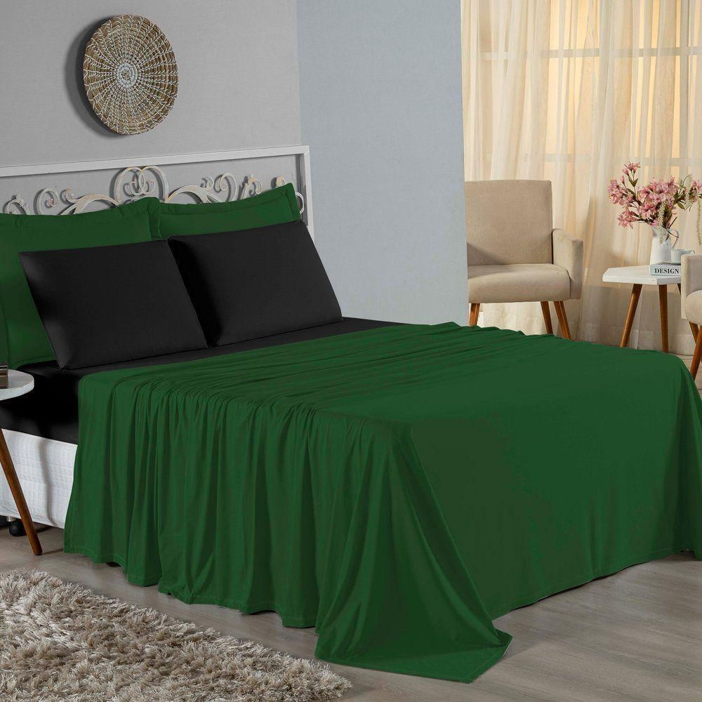 Jogo De Cama Queen Nobre 4 Peças Lençol Com Elástico De 30cm De Altura Malha 100% Algodão - Verde-bandeira / Preto