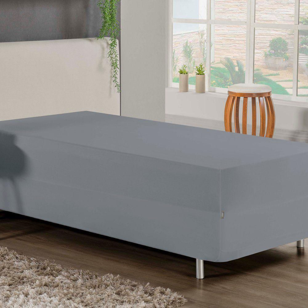Jogo De Cama Solteiro Nobre 2 Peças Luva De Box 55cm De Altura Malha 100% Algodão - Cinza