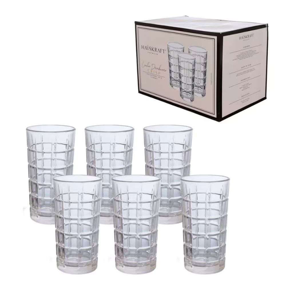 Jogo de Copos Long Drink Hauskraft Crisp 380ml com Borda Dourada 6 Peças Transparente
