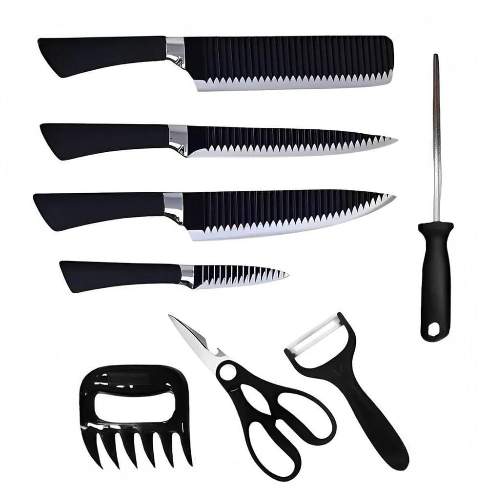 Jogo De Facas Conjunto 8 Peças Aço Inox Garra Tesoura Cozinha