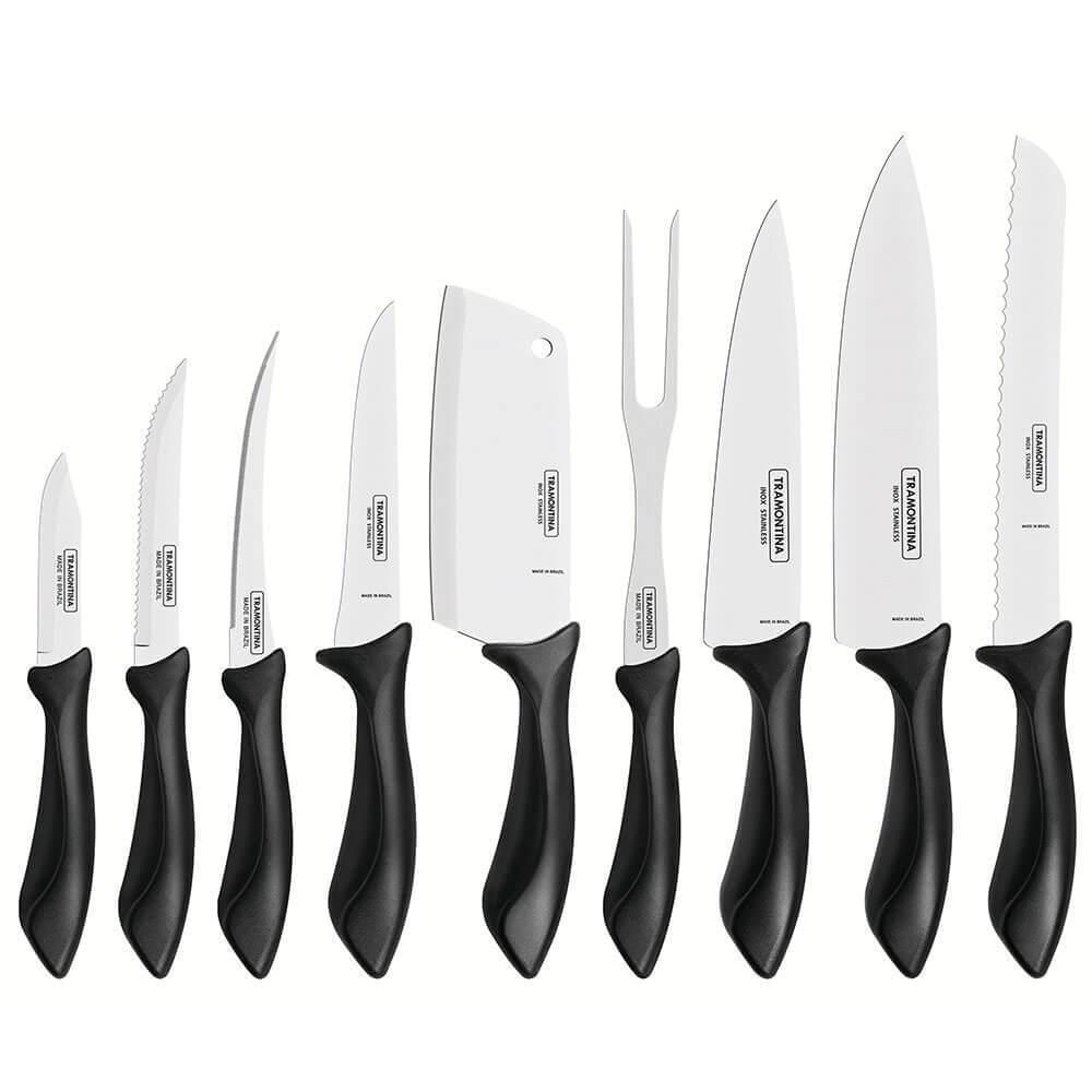 Jogo De Facas Tramontina Affilata Com Lâmina Em Aço Inox E Cabo De Polipropileno Preto 9 Peças 23699