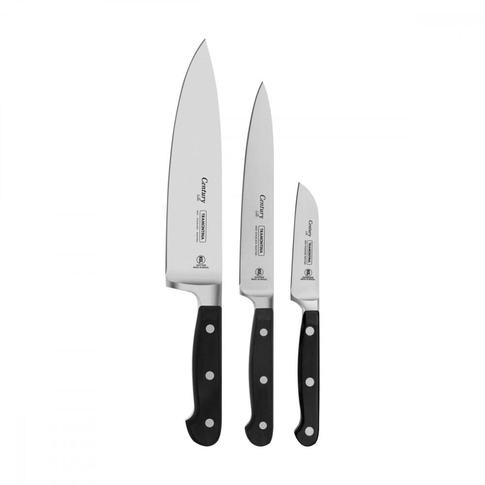 Jogo de Facas Tramontina Century com Lâminas em Aço Inox e Cabos de Policarbonato e Fibra de Vidro 3 Peças