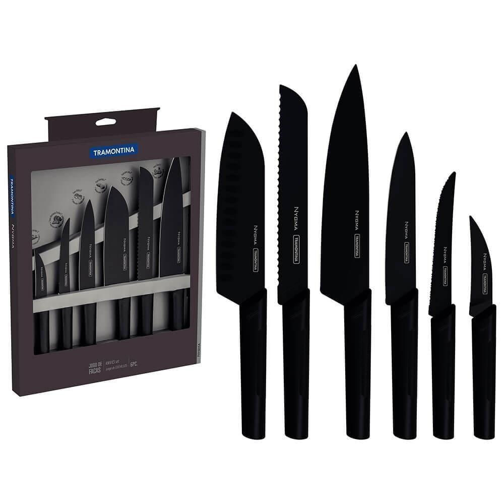 Jogo De Facas Tramontina Nygma Lâminas Em Aço Inox E Cabos De Polipropileno Texturizados Preto 6 Peç