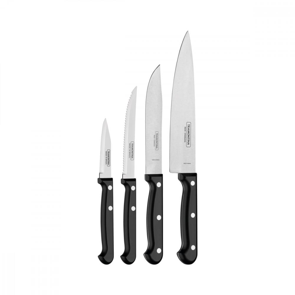 Jogo de Facas Tramontina Ultracorte com Laminas em Aço Inox e Cabos de Polipropileno Preto 4 Peças