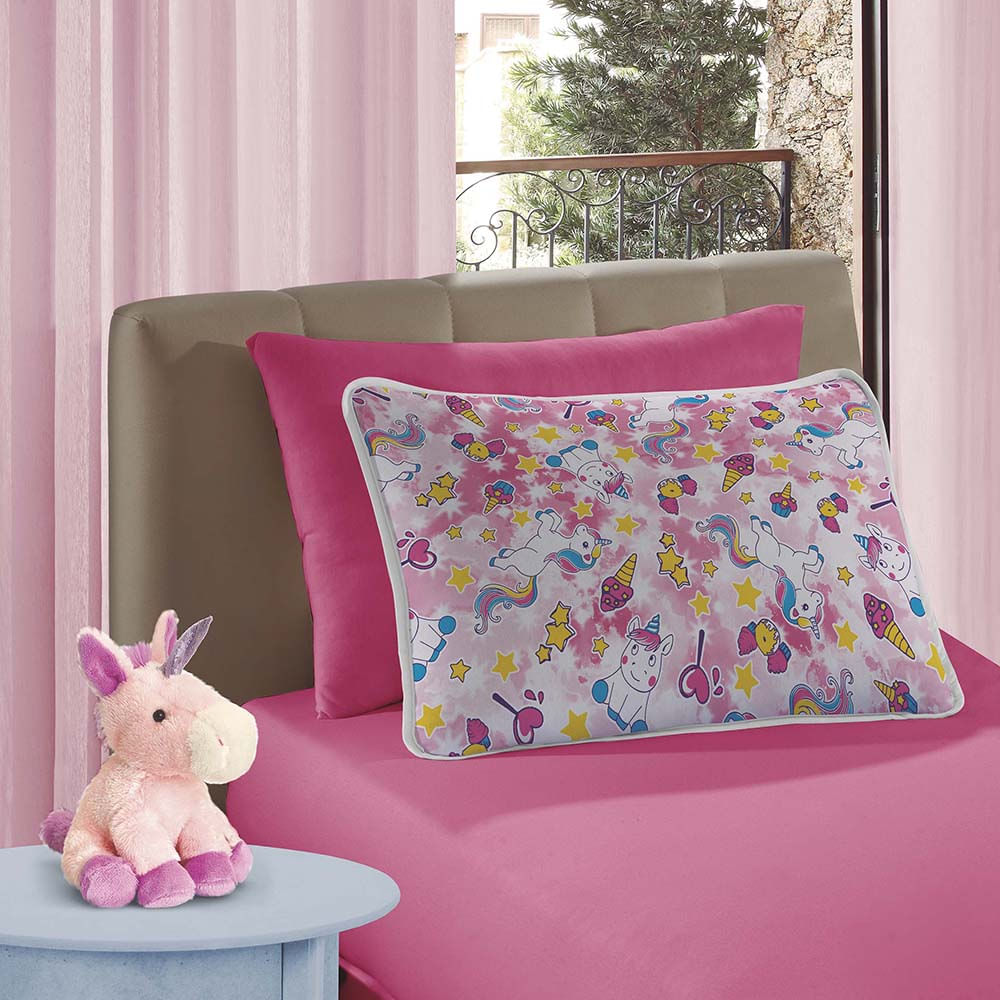Jogo de Lençol Alegria Solteiro 2 Peças Infantil Estampado Malha 100% Algodão - Unicórnio Rosa