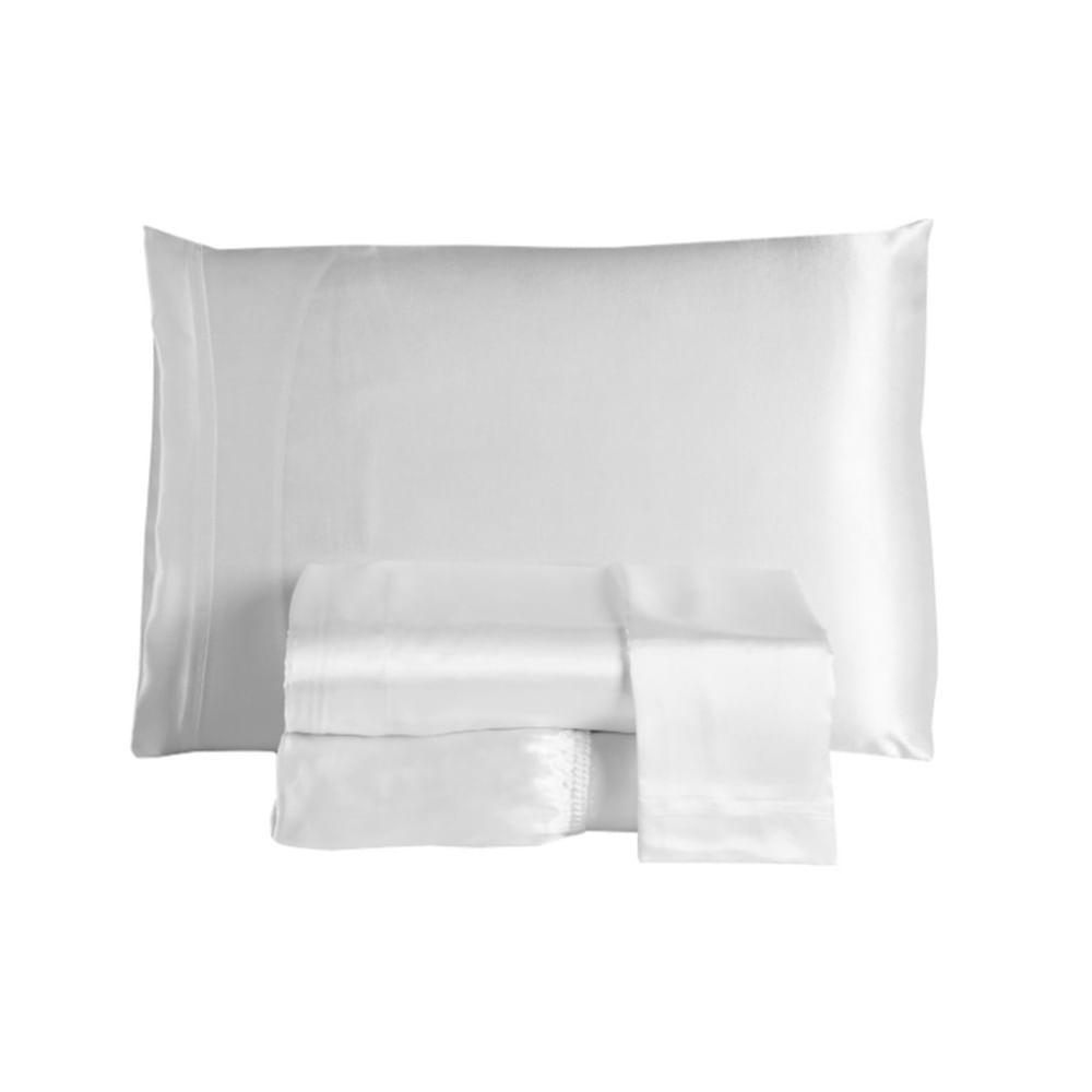 Jogo de Lençol Arya Casal 4 Peças Cetim Charmousse Brilhante Macio - Branco - 100% Poliéster