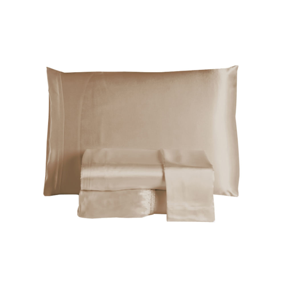 Jogo de Lençol Arya Casal 4 Peças Cetim Charmousse Brilhante Macio - Nude - 100% Poliéster