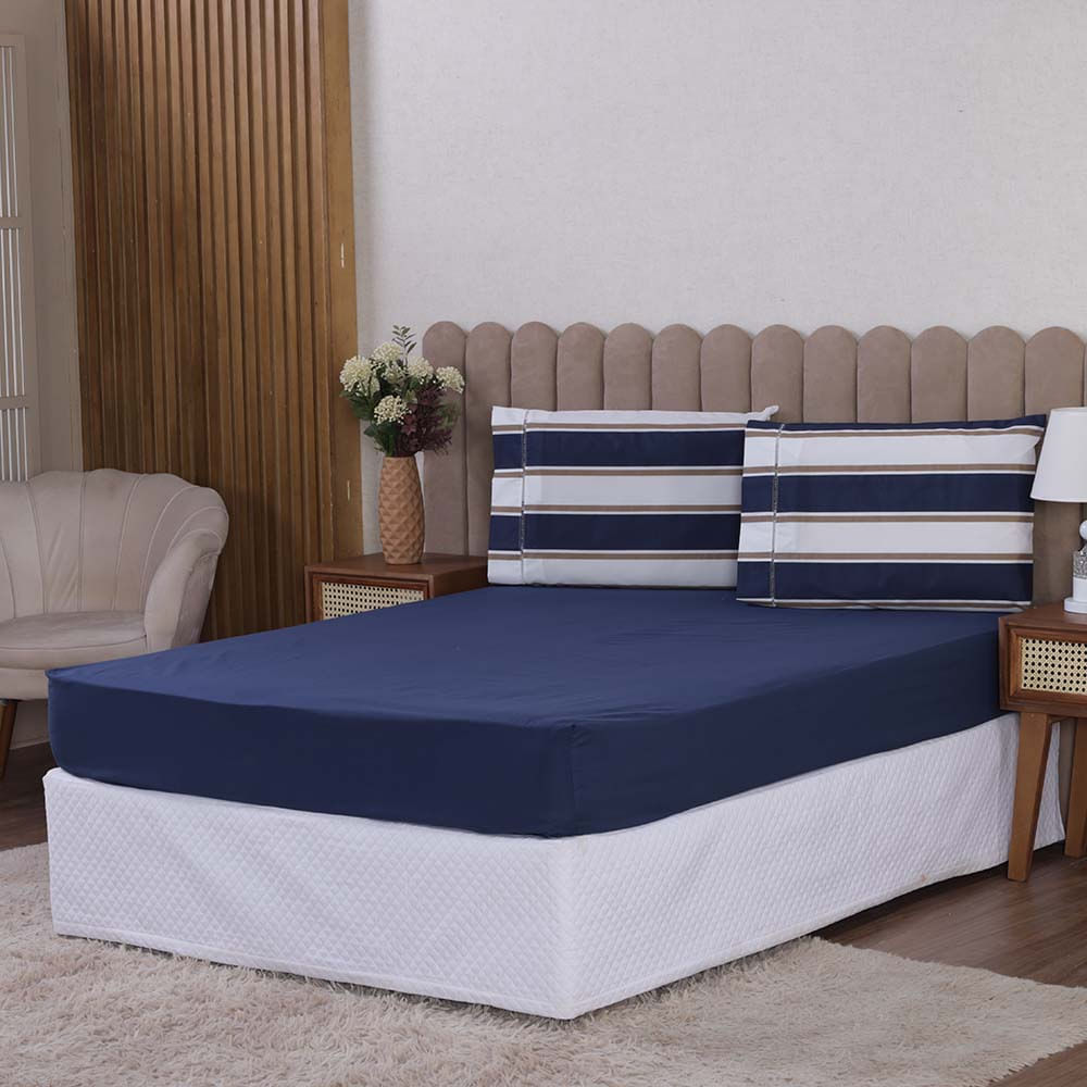 Jogo de Lençol Beatriz Casal 3 Peças Percal 180 Fios 100% Algodão Ponto Palito - Azul Marinho