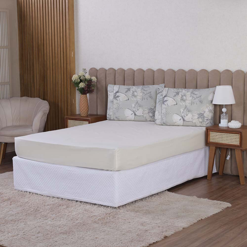 Jogo de Lençol Beatriz Queen 3 Peças Percal 180 Fios 100% Algodão Ponto Palito - Palha Borboleta