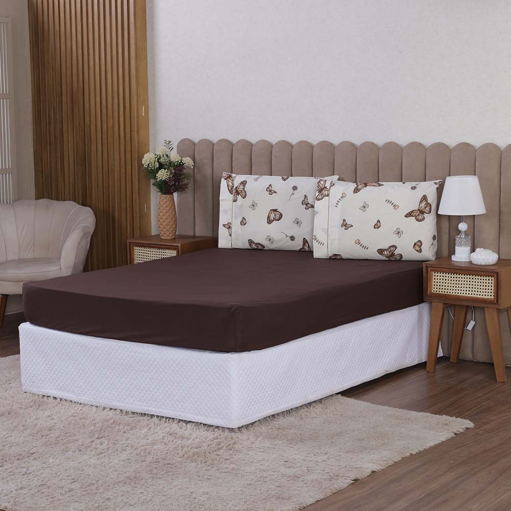 Jogo de Lençol Beatriz Solteiro 2 Peças Percal 180 Fios 100% Algodão Ponto Palito - Marrom Borboleta
