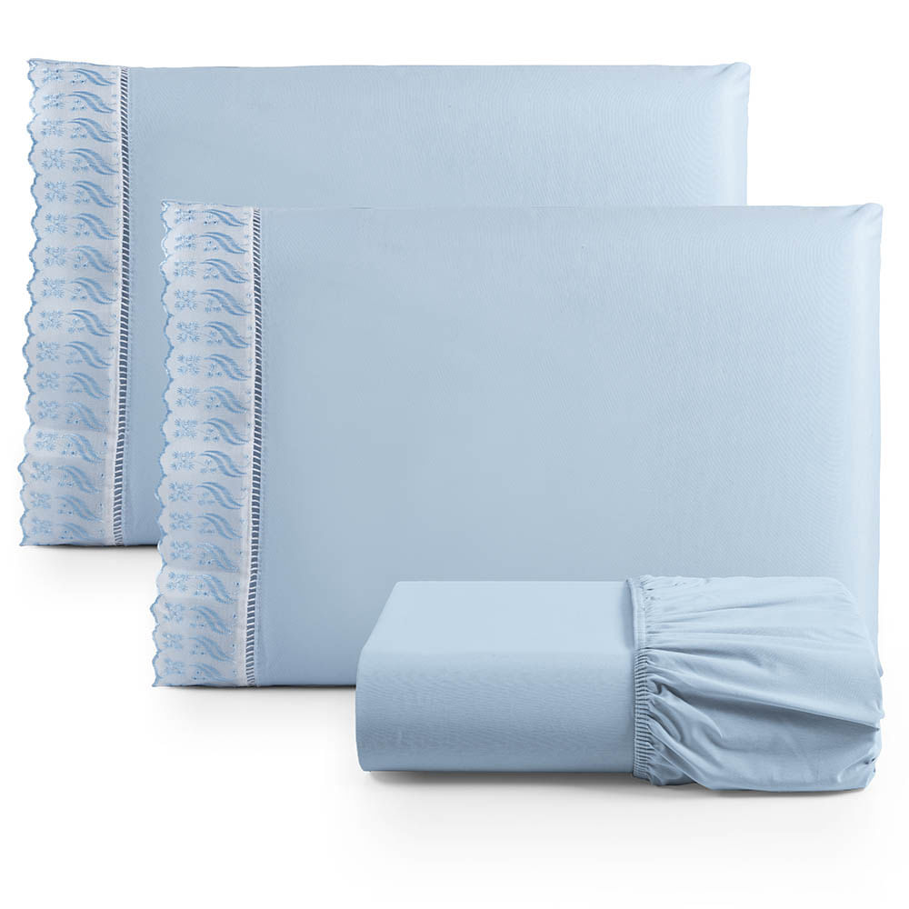 Jogo de Lençol Casal 3 Peças Basic Percal 180 Fios Lese Bordado Inglês - Azul