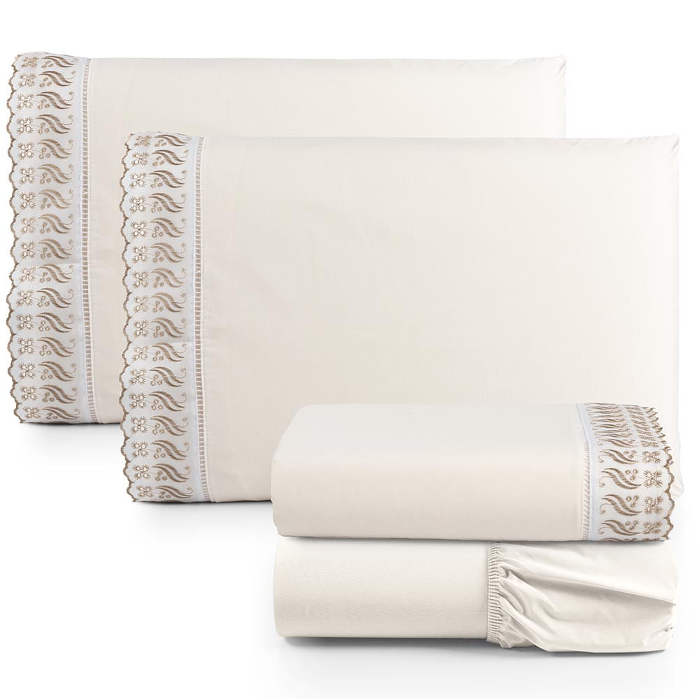 Jogo de Lençol Casal 4 Peças Basic Percal 180 Fios Lese Bordado Inglês - Palha