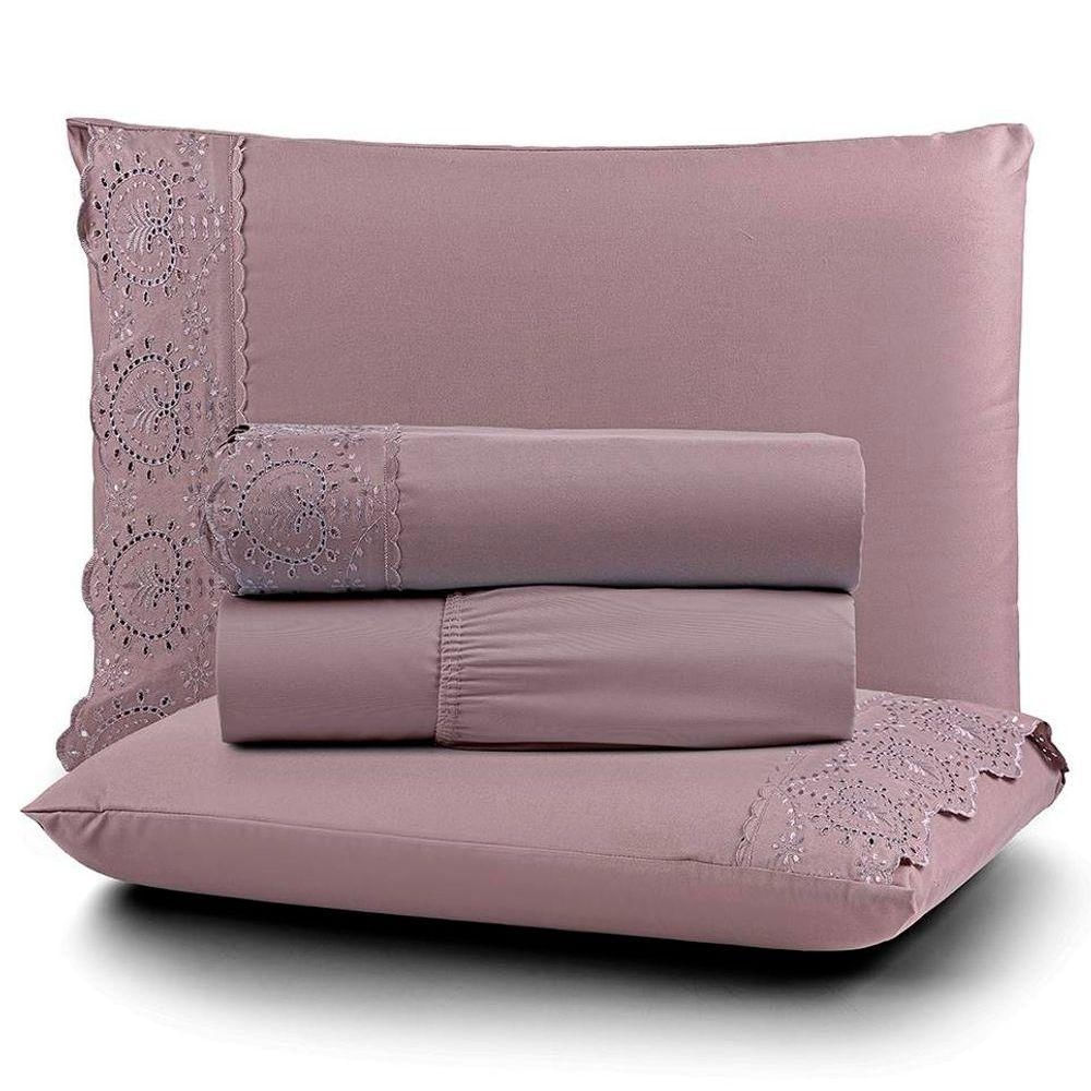 Jogo De Lençol Casal Nobless Bordado Micropercal 200 Fios Toque De Algodão 4 Peças Uva