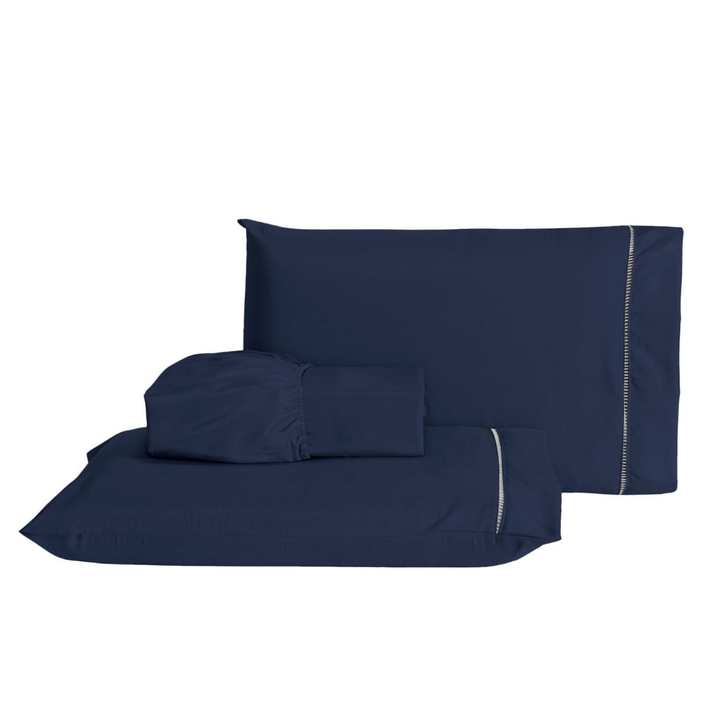 Jogo de Lençol Casal Padrão 3 Peças Laura 400 Fios 100% Poliéster - AzulMarinho