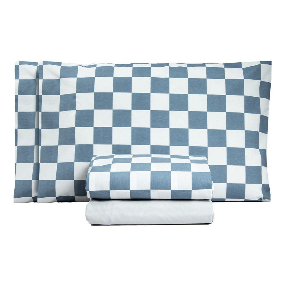 Jogo De Lençol Casal Padrão Classic Estampado 160 Fios 4 Peças Azul