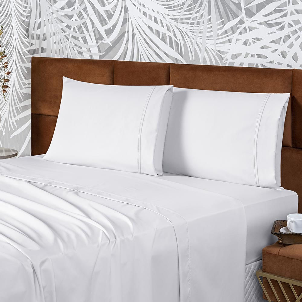 Jogo de Lençol Conforto Queen 4 Peças MicroPercal 200 Fios C/ Elástico - Branco
