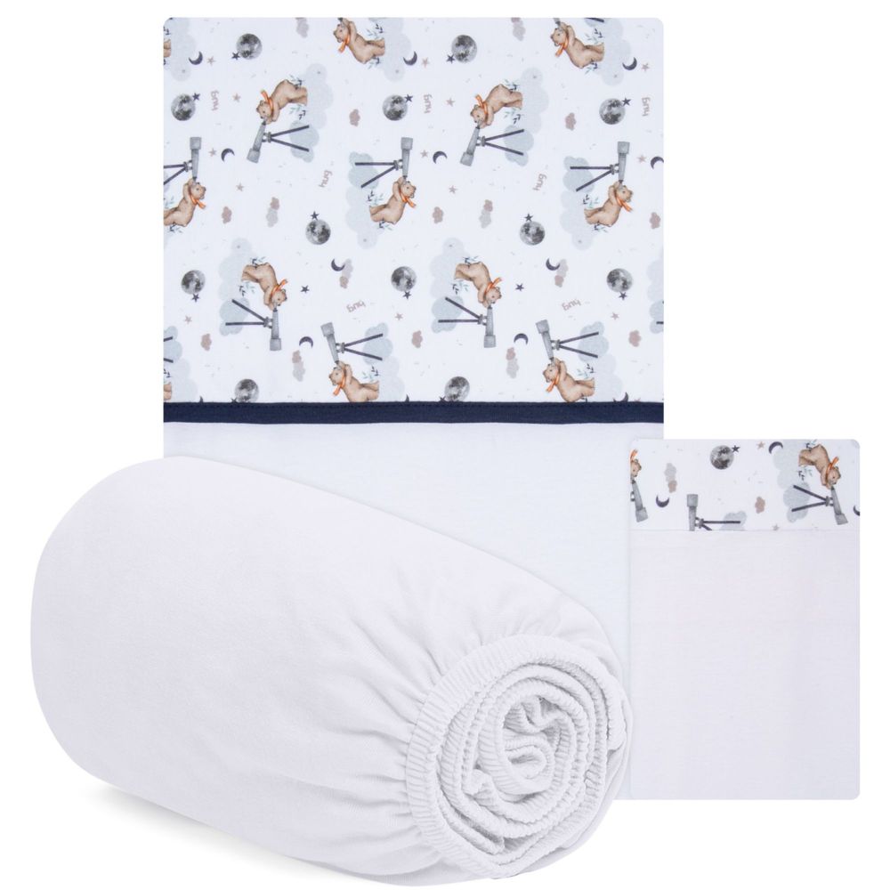 Jogo de Lençol de Berço 3 Pçs Lunar Azul Marinho Menino - Hug Azul Marinho