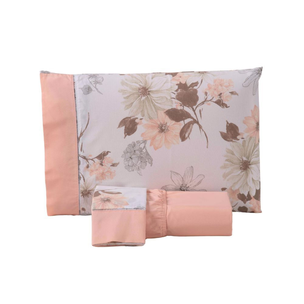Jogo de Lençol Encantare Ponto Palito Estampado Completo 4 Peças Casal 80% Algodão / 20% Poliéster Percal 180 Fios - Sal