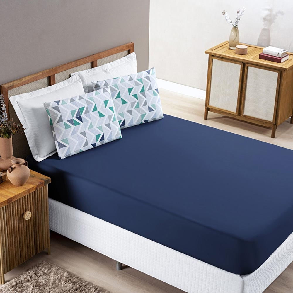 Jogo de Lençol Grace Queen 3 Peças Malha 100% Algodão Macio Estampado - Azul Geométrico