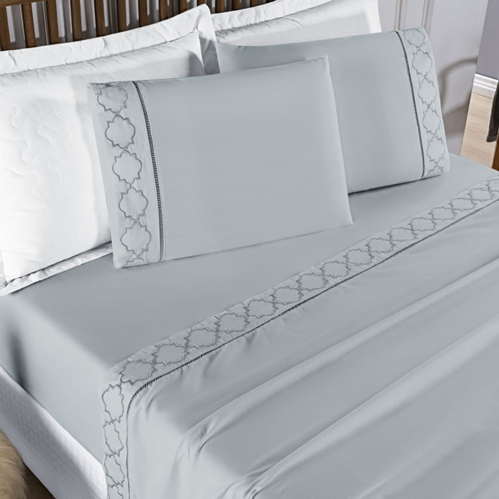 Jogo de Lençol Helena King 4 Peças MicroPercal 400 Fios Ponto Palito Macio - Cinza