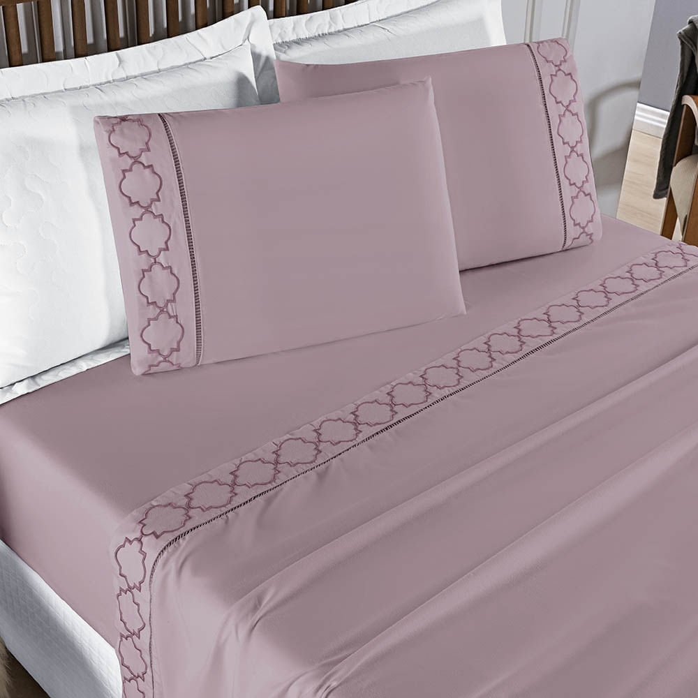 Jogo de Lençol Helena Queen 4 Peças MicroPercal 400 Fios Ponto Palito Macio - Uva