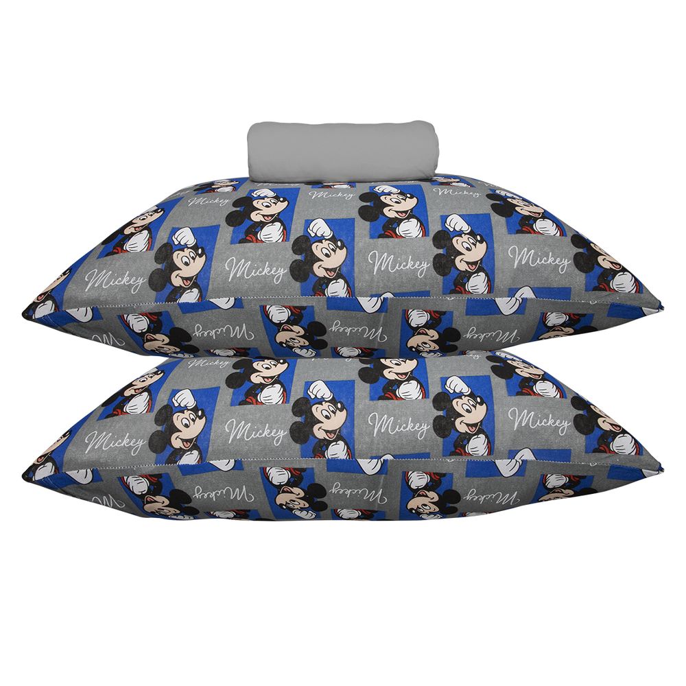Jogo de Lençol KazzaVip Casal Malha 100% Algodão Play Disney Mickey Quadros 3 Peças Cinza
