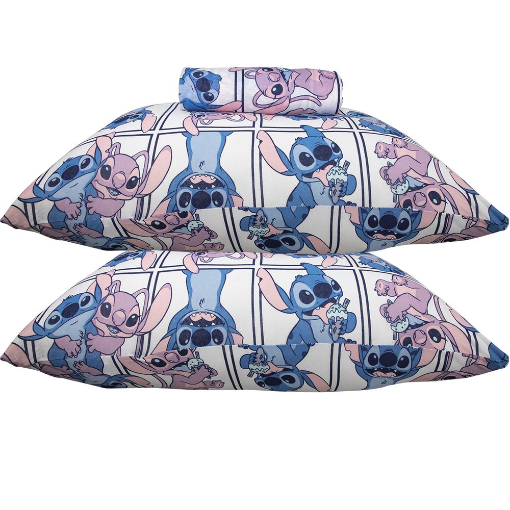 Jogo de Lençol KazzaVip Casal Malha Mista 70% Algodão e 30% Poliéster Estampado Disney Stitch Quadros Kids 3 Peças Lilas