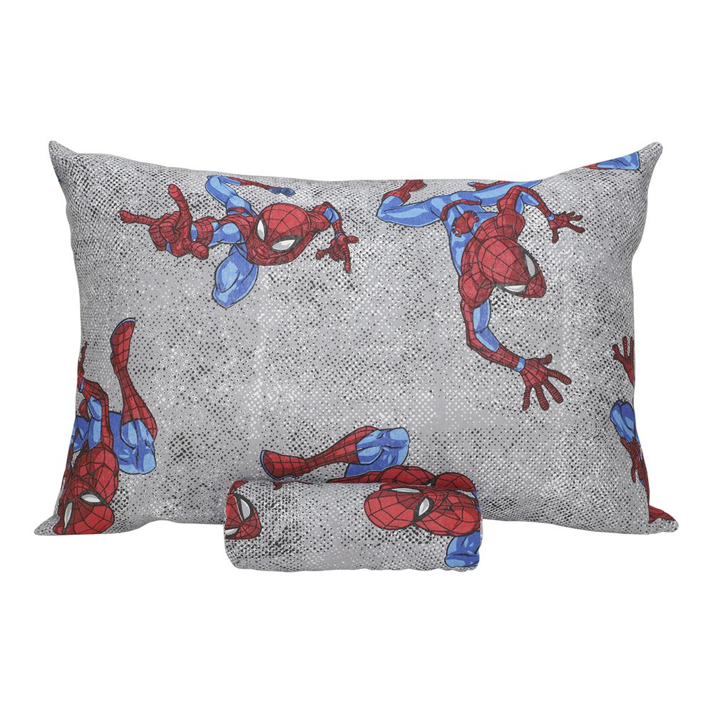 Jogo de Lençol KazzaVip Solteiro Malha Mista 70% Algodão 30% Poliéster Kids Marvel Spider Wall 02 Peças Cinza